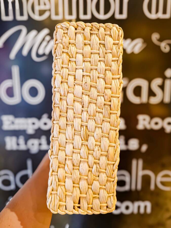 Confeccionada com fibras naturais de palha de milho trançadas à mão, destaca-se pela aparência natural da palha e design agradável. Possui textura firme e leve, sendo ideal para o uso no dia a dia.