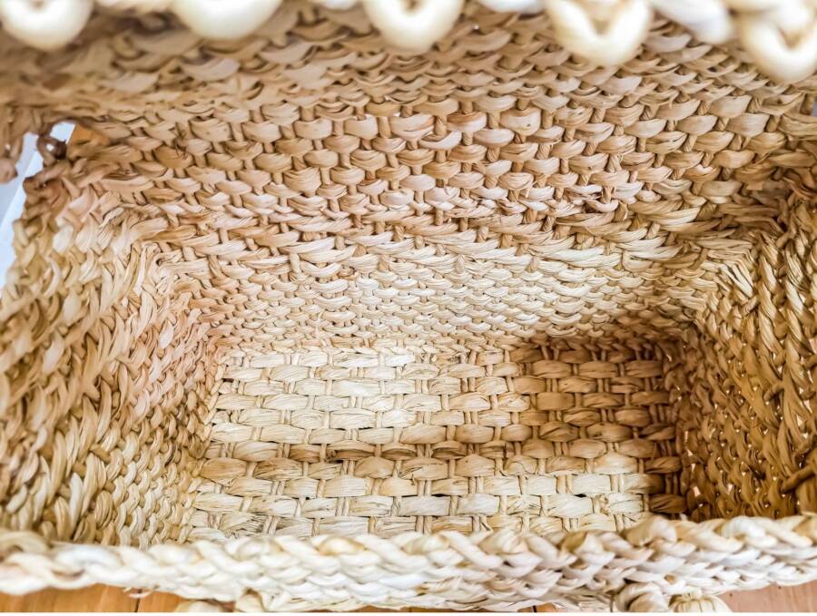 Espaçosa e leve, é ideal para acomodar alimentos e bebidas com praticidade. Confeccionada com fibras naturais de palha de milho trançadas à mão, possui textura firme, aparência natural e design agradável, perfeita para passeios em praias, piscinas ou parques.