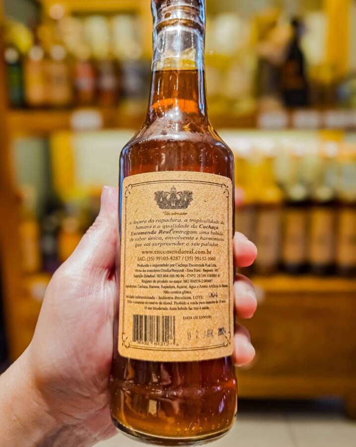 Produzido artesanalmente em Cruzília, Minas Gerais, o Licor Encomenda Real Banana com Rapadura homenageia a tradição e a riqueza da culinária mineira.