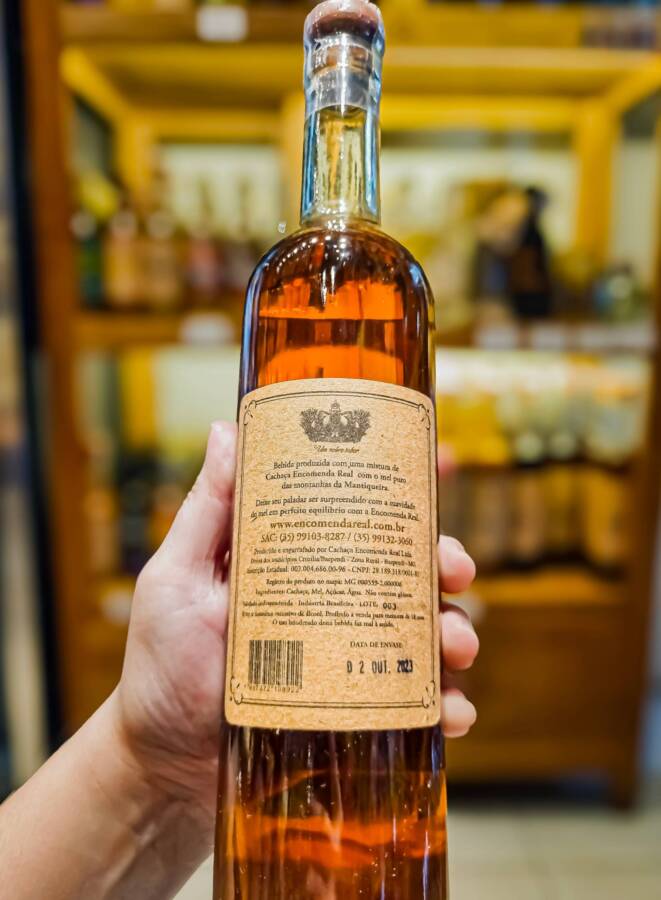 Produzido pela Encomenda Real, o Licor de Mel é elaborado de forma artesanal com mel puro proveniente de apiário da Serra da Mantiqueira, sem adição de corantes, essências ou aromatizantes artificiais.