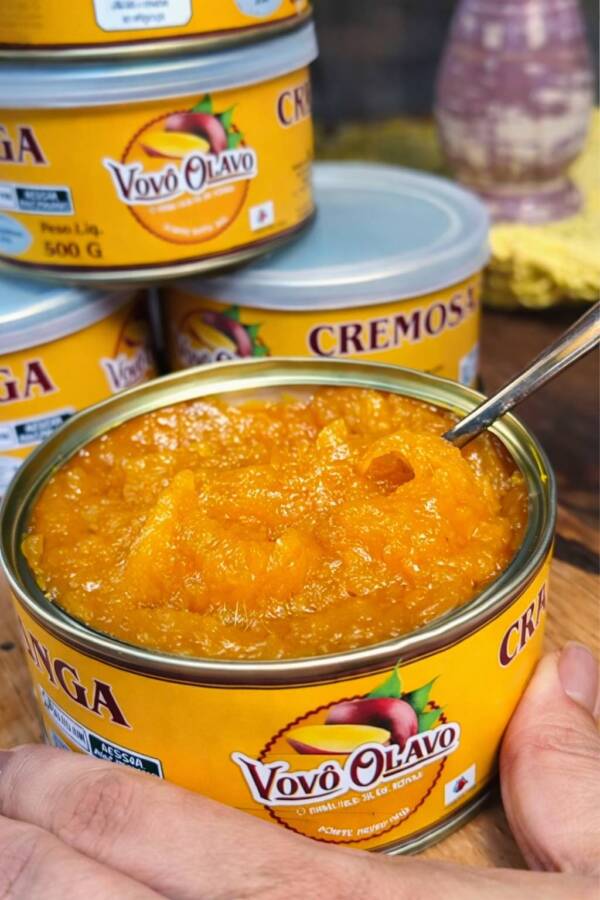 Produzido de forma artesanal, o Doce de Manga do Vovô Olavo é preparado com mangas selecionadas, seguindo receitas tradicionais que remetem ao sabor caseiro da fazenda.