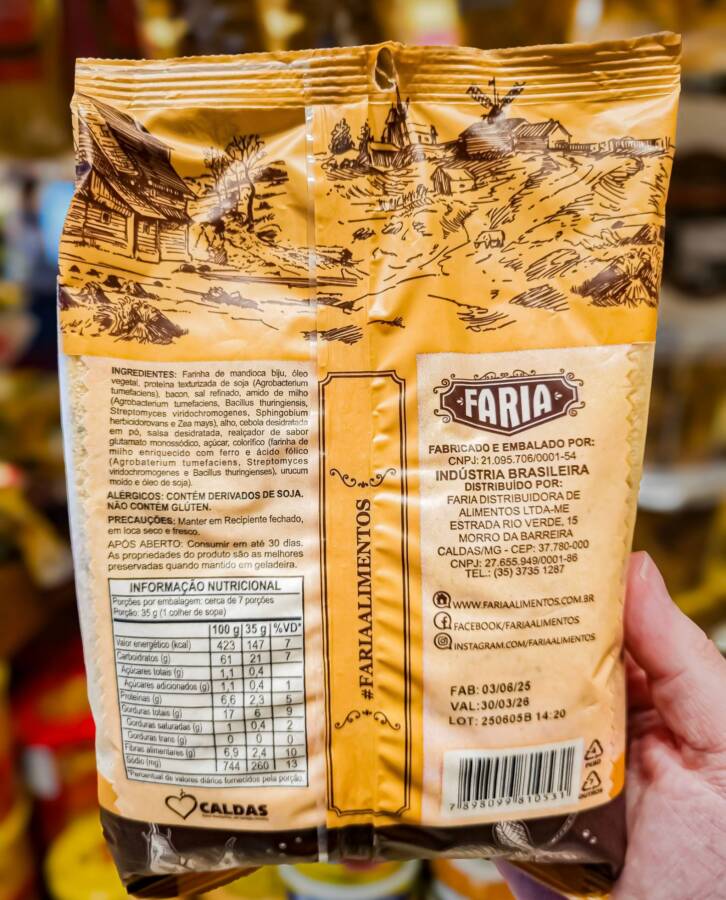 Ingredientes: Farinha de mandioca biju, óleo vegetal, sal e especiarias